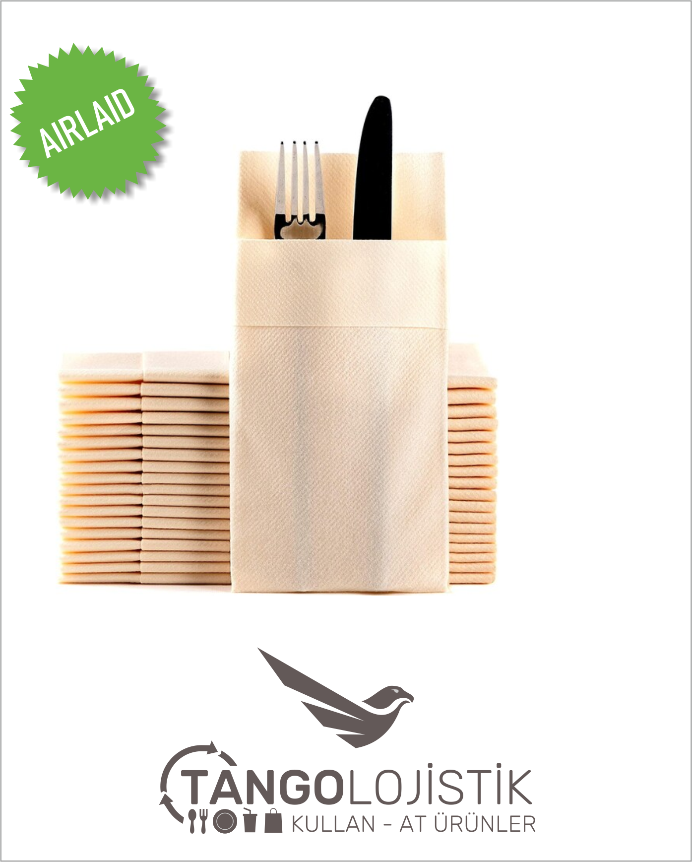 Airlaid peçeteler, ketene modern bir kağıt alternatifidir. Kalın, yumuşak kabartmalı bir peçete olup, yemeklerin, çatal-bıçak takımının ve yemek ortamının en önemli öncelik olduğu yemekhaneler ve evler için mükemmeldir.